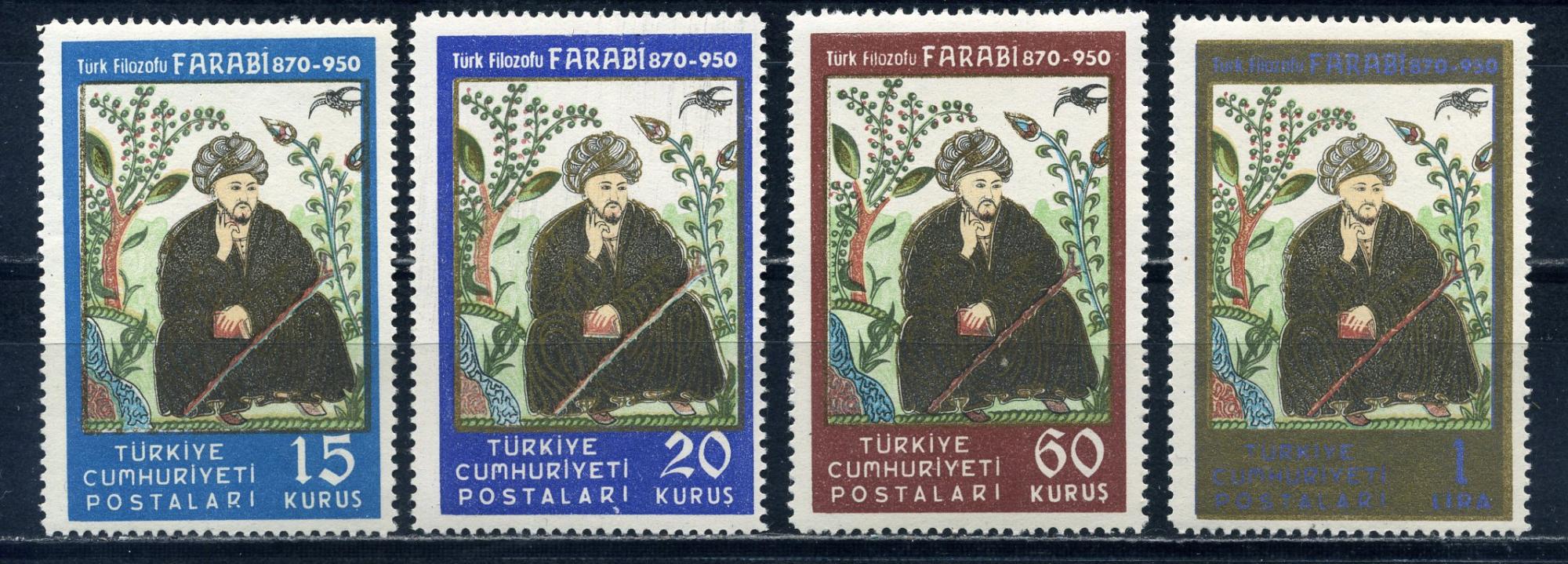 Почтовые марки. Турция. 1950г. Аль-Фараби. №1266-1269 (Mi: 13.00 Евро).