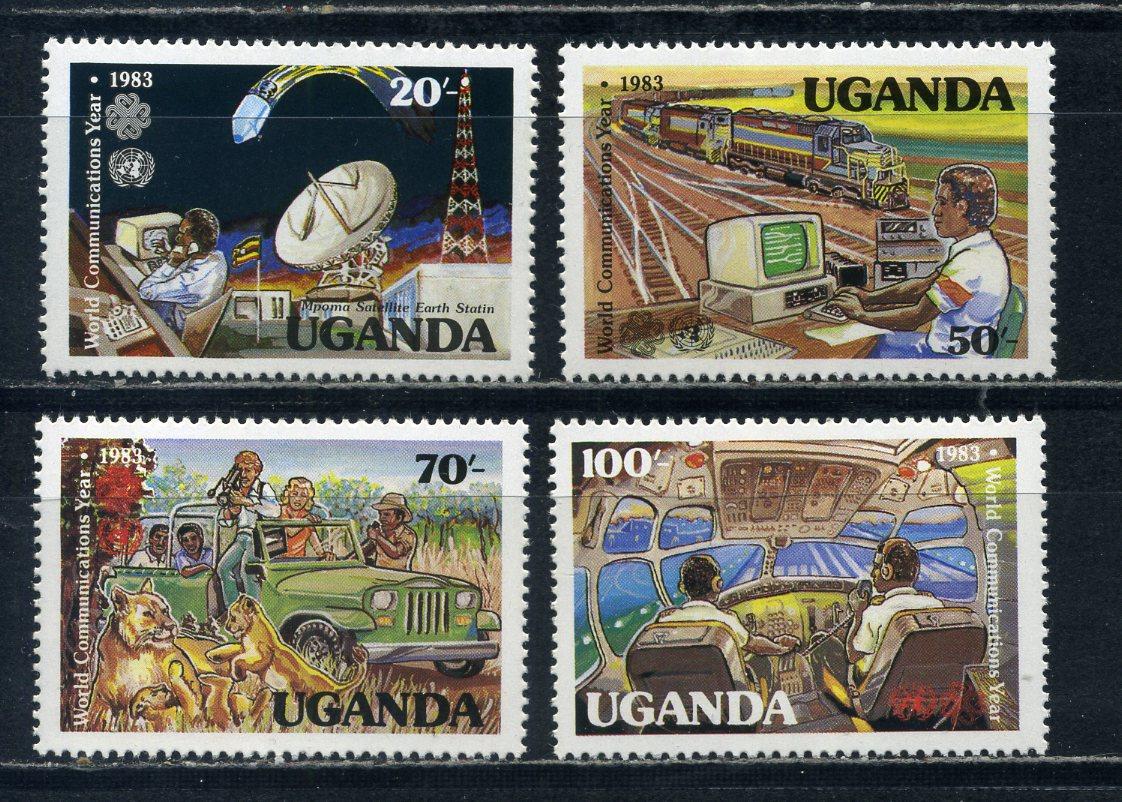 Почтовые марки. Уганда. 1983г. Год коммуникаций. Транспорт. №378-381.