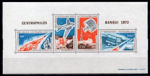 Почтовые марки. ЦАР, 1972 г. Бл.7. Филвыст. Космос