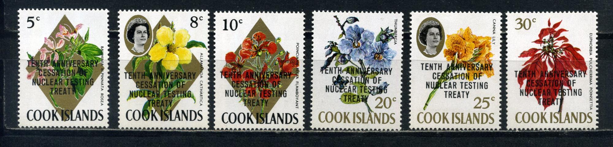 Почтовые марки. О-ва Кука. 1973г. Цветы. Надпечатка. №359-364.