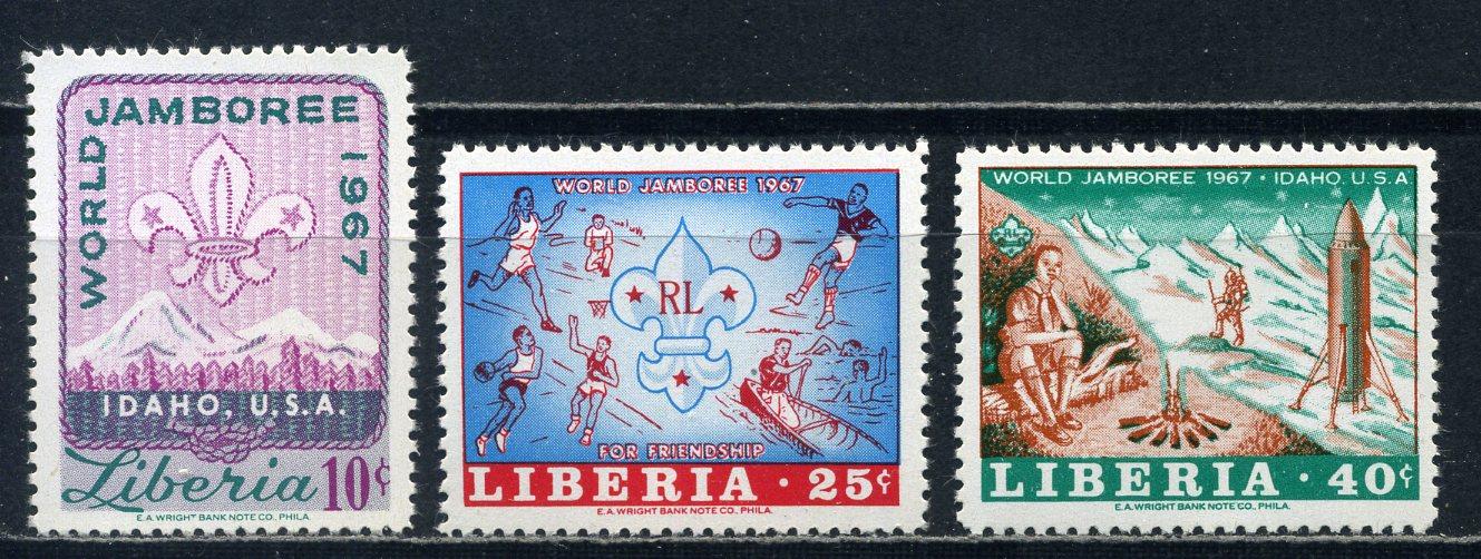 Почтовые марки. Либерия. 1967г. Бойскауты. Спорт. Космос. №676-678.