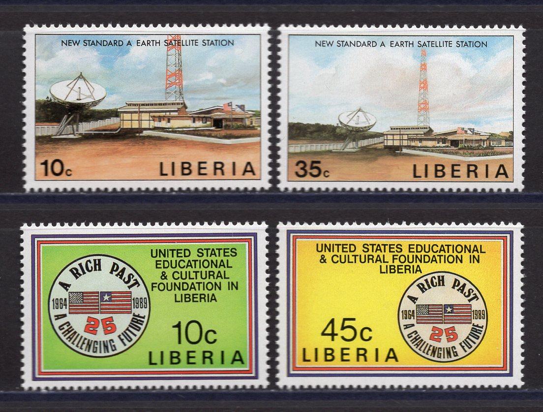 Почтовые марки. Либерия. 1990г. Спутниковая станция. №1467-1470.