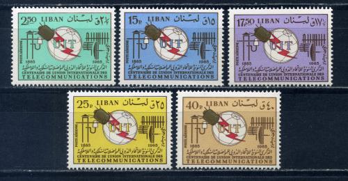 Почтовые марки. Ливан. 1966г. UIT. Космос. Всемирный союз электросвязи. №935-939.