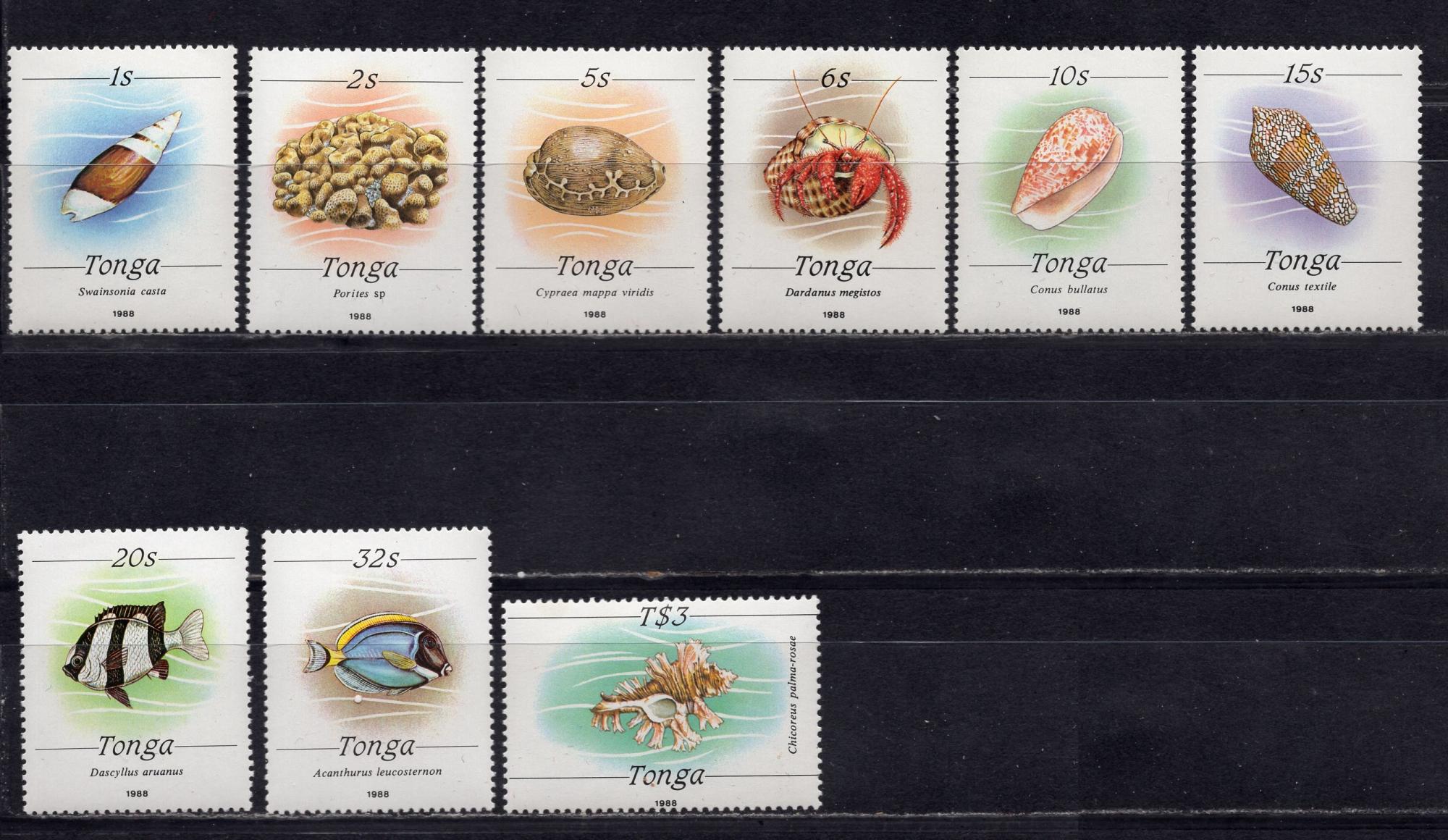 Почтовые марки. Тонга, 1987 г. №1037 II - 1047 II. Морские обитатели. Некомплект.