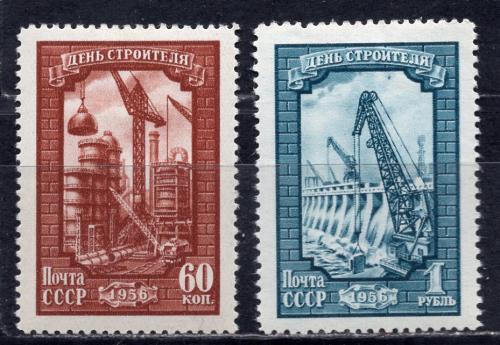 Почтовые марки. СССР, 1956 г. №1954, 1955 г. День строителя.