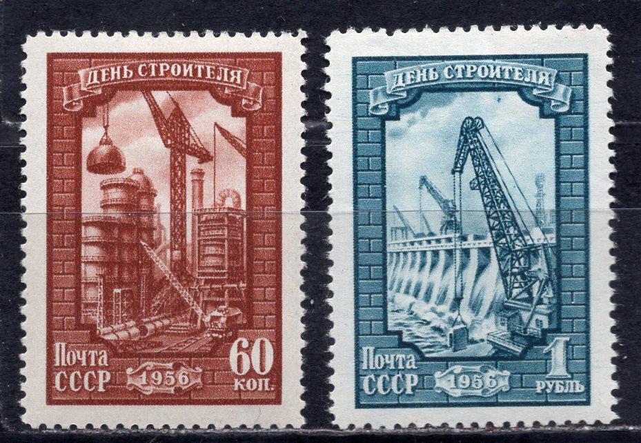 Почтовые марки. СССР, 1956 г. №1954, 1955 г. День строителя.