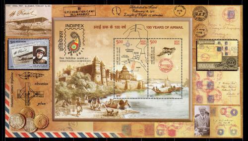 Почтовые марки. Индия, 2011 г. Международная выставка филателии INDIPEX 2011, Нью-Дели. Самолеты, История почты. Бл. 93.