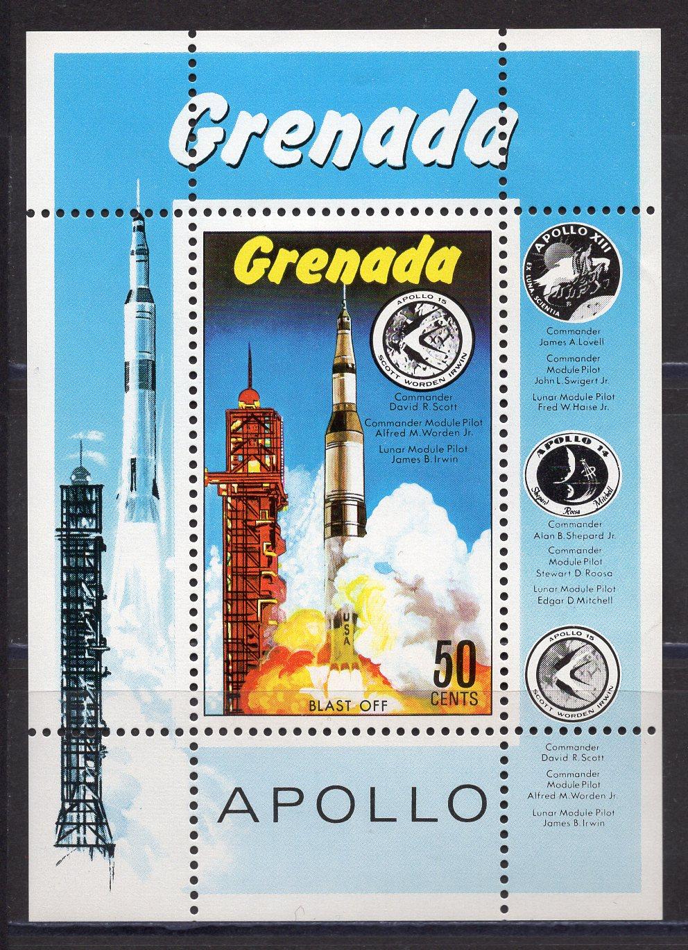 Почтовый блок. Гренада 1971 г. Космос. Аполлон. № 16