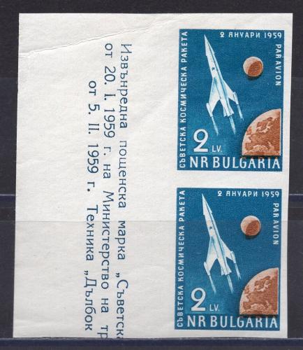 Почтовые марки. Болгария. 1959г. Космос. №1100в. Беззубц. Сц. (См.сост. верхней марки)