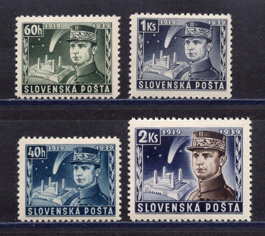 Почтовые марки. Словакия. 1939г. Астрономия. Комета. Штефаник. №1-4.