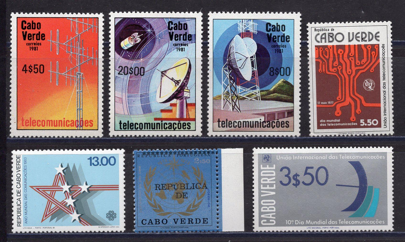 Почтовые марки. Кабо-Верде. 1977-1983г. Космос. Телеком. Сборный лот. №378, №392 etc.