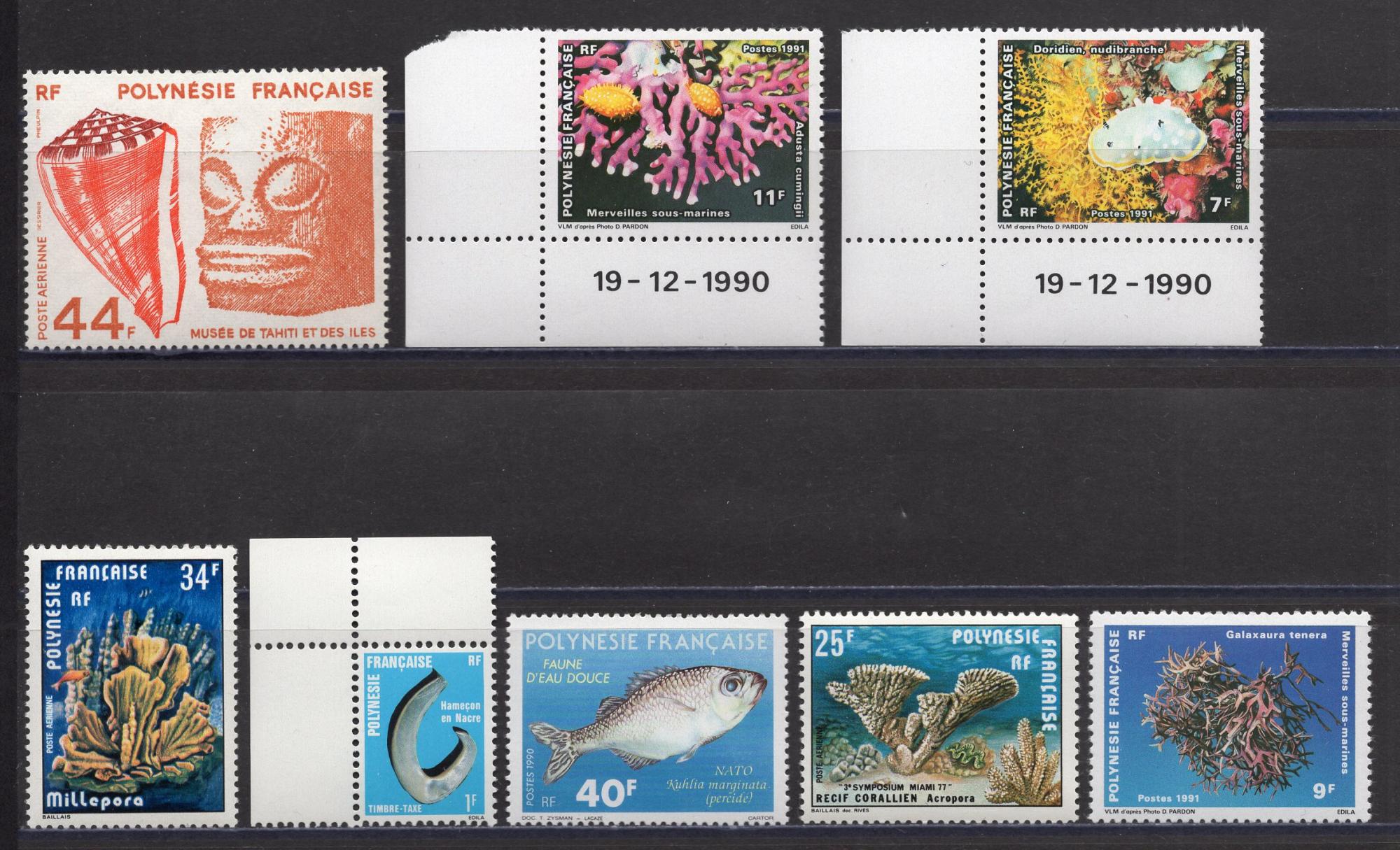 Почтовые марки. Фр.Полинезия. 1977-1991г. Ракушки. Морская Фауна и Флора. Сборный лот.