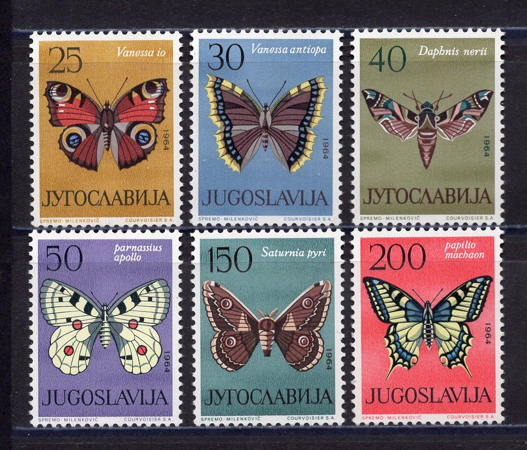 Почтовые марки. Югославия. 1964г. Бабочки. №1069-1074.