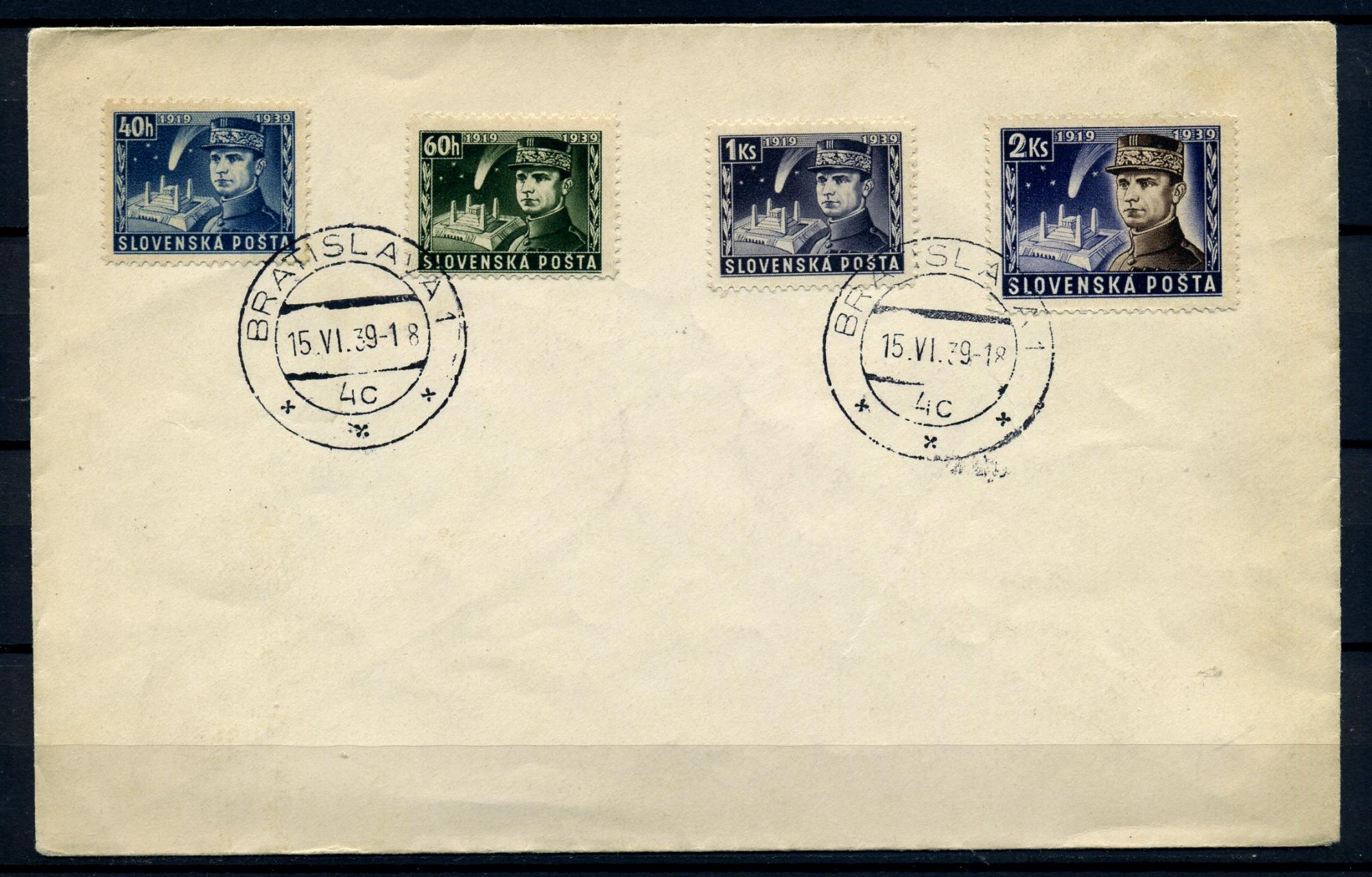 Конверт с марками и гашением. Словакия 1939 г. М.Р. Штефаник. КО.