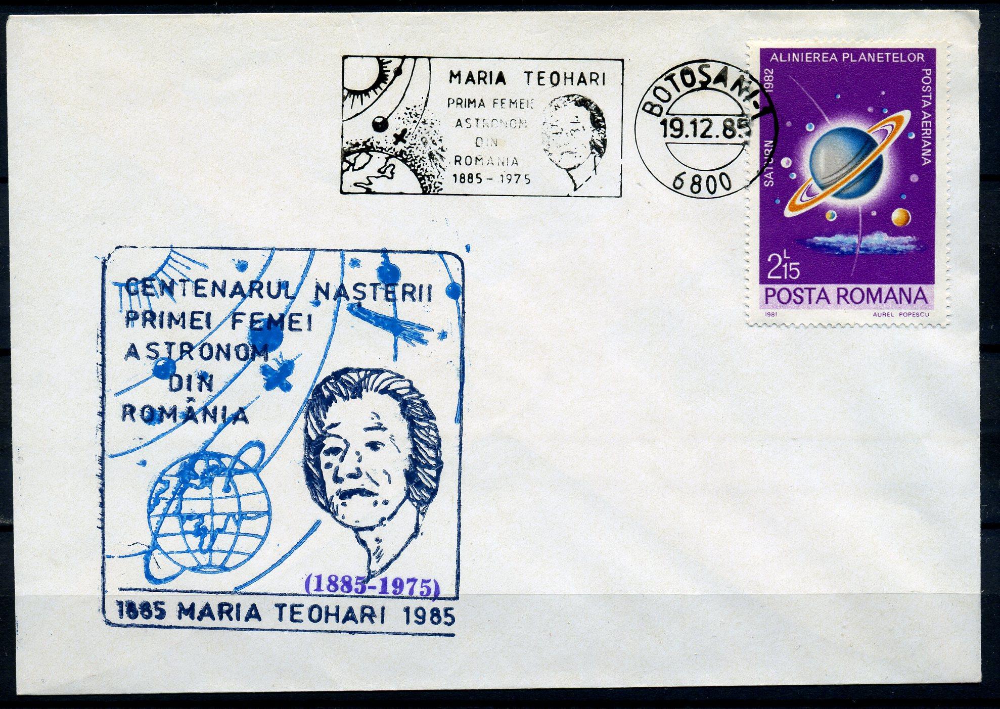 Конверт с маркой и СГ. Румыния 1985 г. Мария Теохари.КО.
