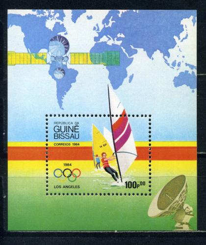 Почтовые марки. Гвинея-Биссау. 1984г. Олимп.игры в Лос-Анжелесе. Космос. Блок №260.