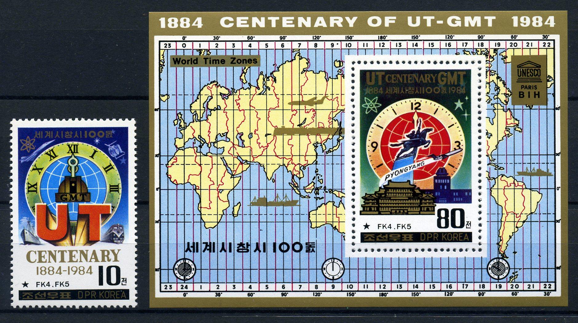 Почтовые марки. КНДР. 1984г. География. Часовые пояса. Блок №183, №2495