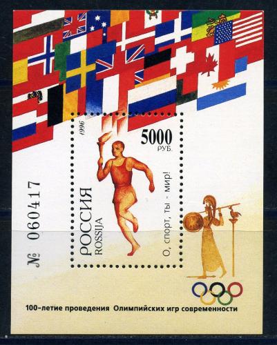 Почтовый блок. Россия 1996 г. 100-летие проведения Олимпийских игр современности. № 271 (Бл. 11). Номерной.