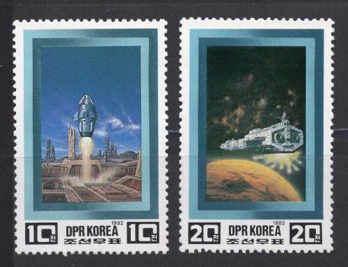 Почтовые марки. КНДР. 1982г. Космос. Научная фантастика. №2255-2256.