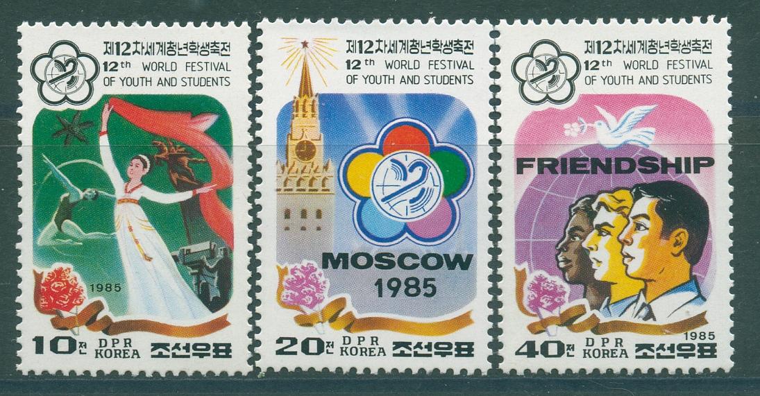 Почтовые марки КНДР 1985 г Фестиваль молодежи в Москве № 2663-2665