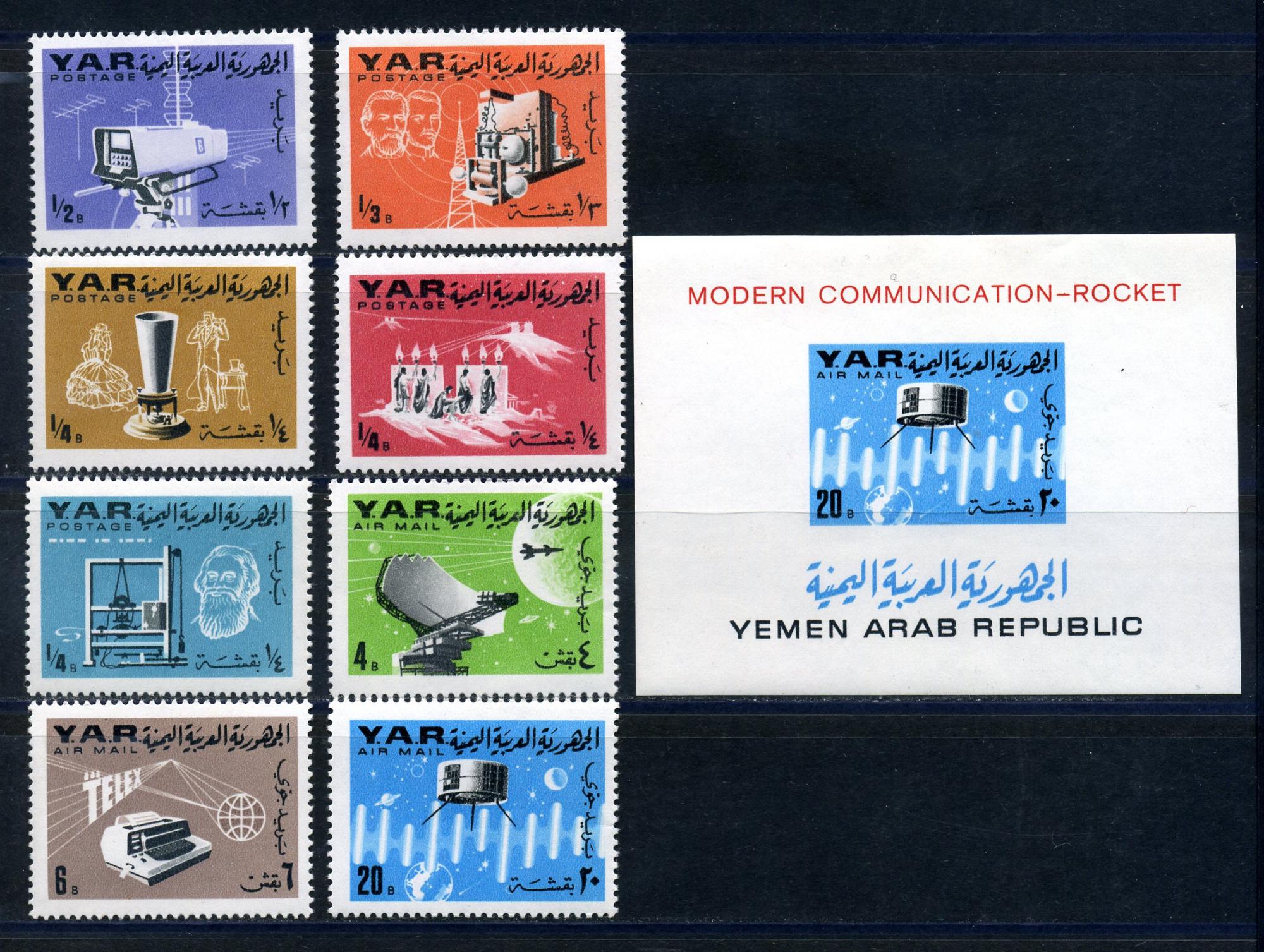Почтовые марки. Йемен, Арабская Республика 1966 г. Телекоммуникации. Космос. Mi: 451-458, BL 43. ( Mi: 18 Е)