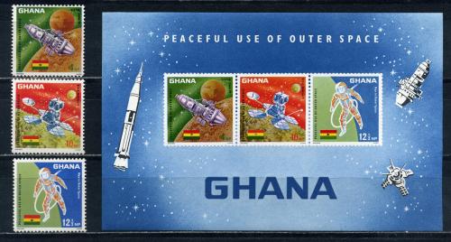 Почтовые марки. Гана. 1967г. Космос. №310-312. Блок №26.