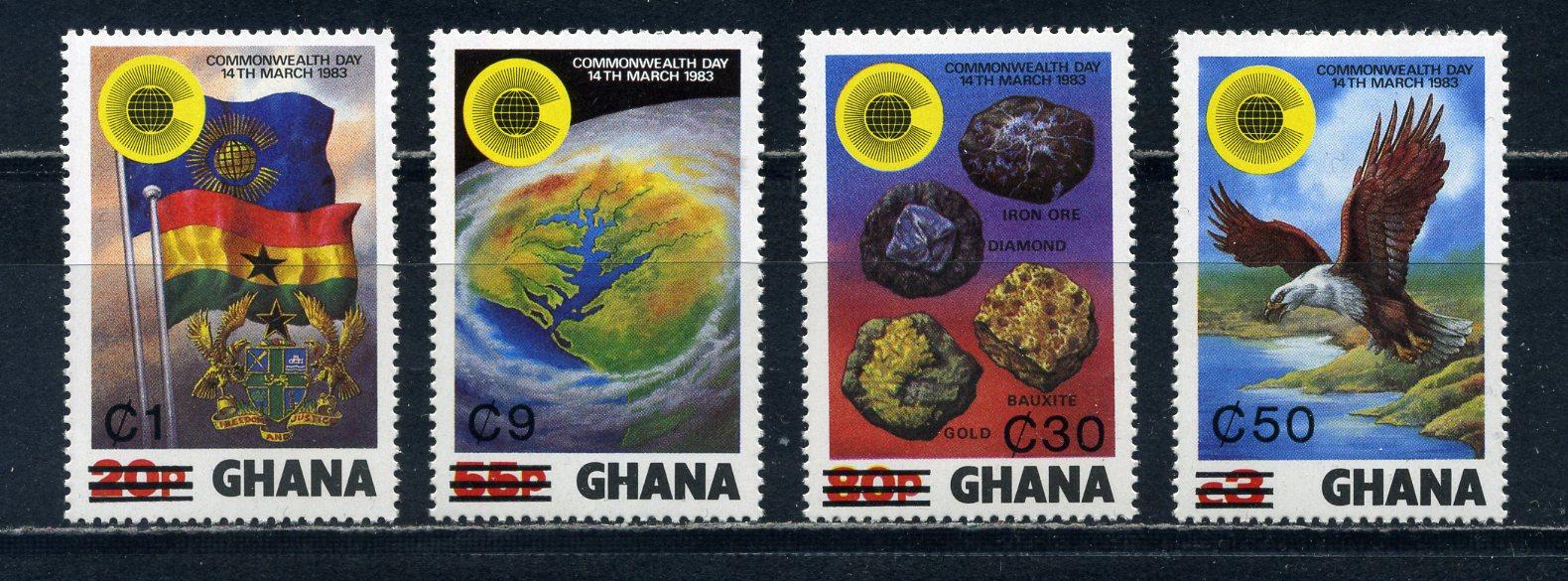 Почтовые марки. Гана. 1984г. Содружество. Птицы. Надпечатка. №993.995.1021.1023.