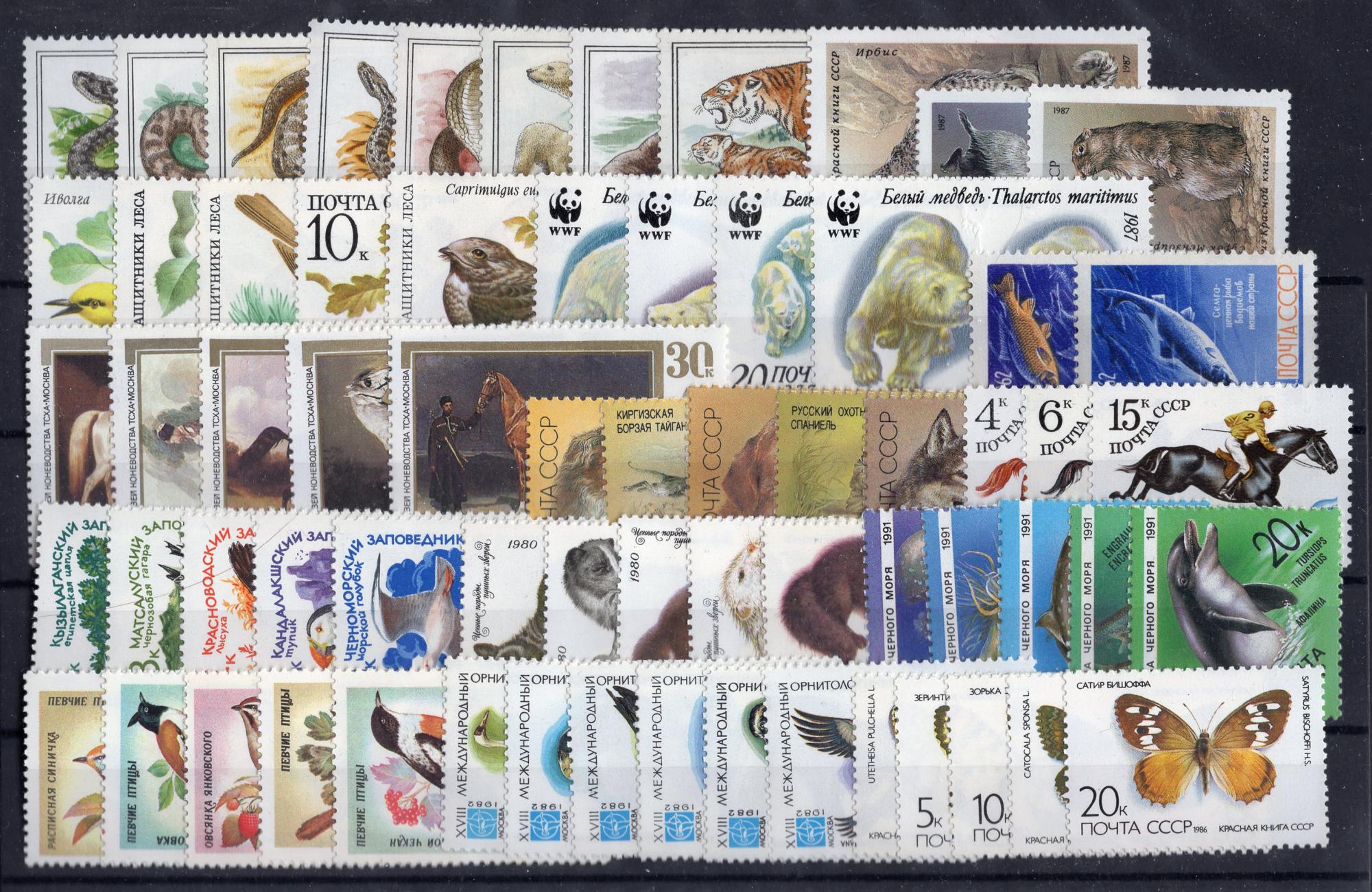 Почтовые марки. СССР. 1980-1988-е года. Фауна. (Без планшетки) (64 м.)