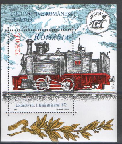 Почтовые марки. Румыния. 2002г. Локомотив. Блок №323.