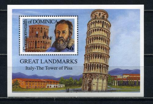 Почтовые марки. Доминика. 1991г. Пизанская башня. Блок №186.