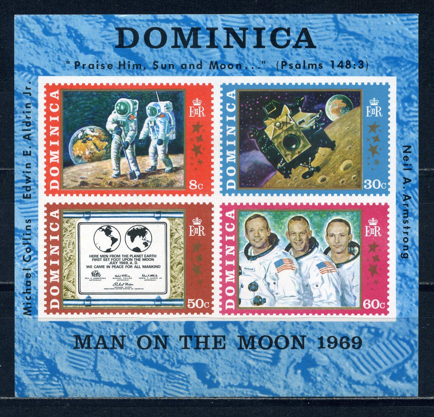 Почтовые марки. Доминика. 1970г. Космос. Первый человек на Луне. Блок №2.