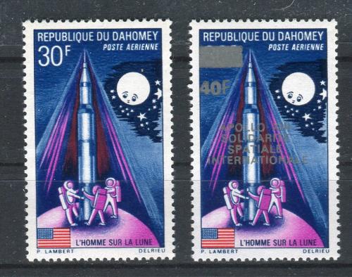 Почтовые марки. Дагомея, 1970 г. Космос. Обычная + надп. №407, 417.