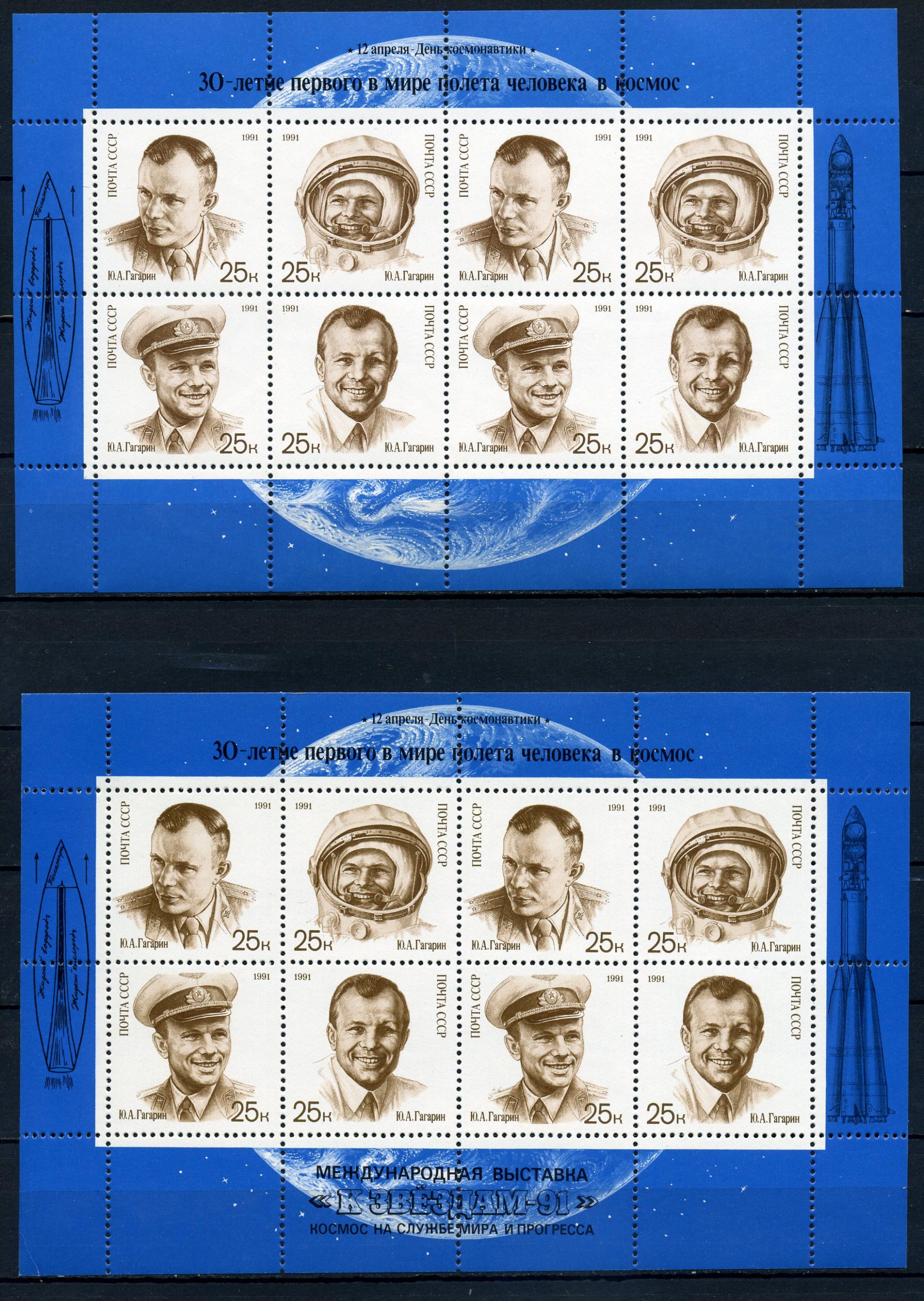 Почтовые марки. СССР 1991г. День космонавтики. (Гагарин) № 6306-6309. МЛ + МЛ с надпеч.