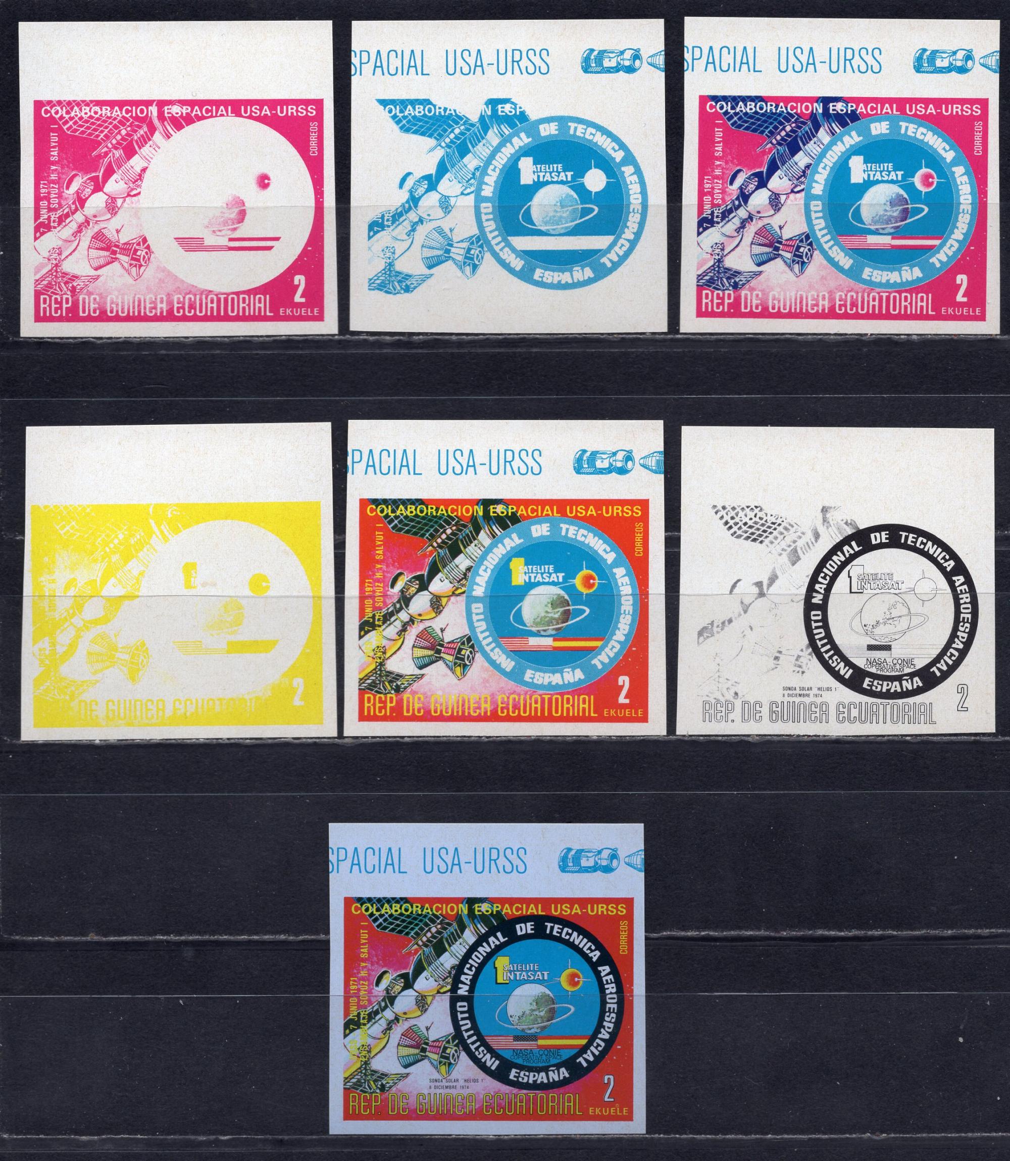 Почтовые марки. Экваториальная Гвинея 1975 г. Космос. Сотрудничество США-СССР. Mi: А588. Пробы.