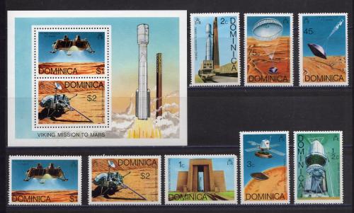 Почтовые марки. Доминика, 1976 г. №497- 504, Бл. 38. Космос. Викинг на Марсе.