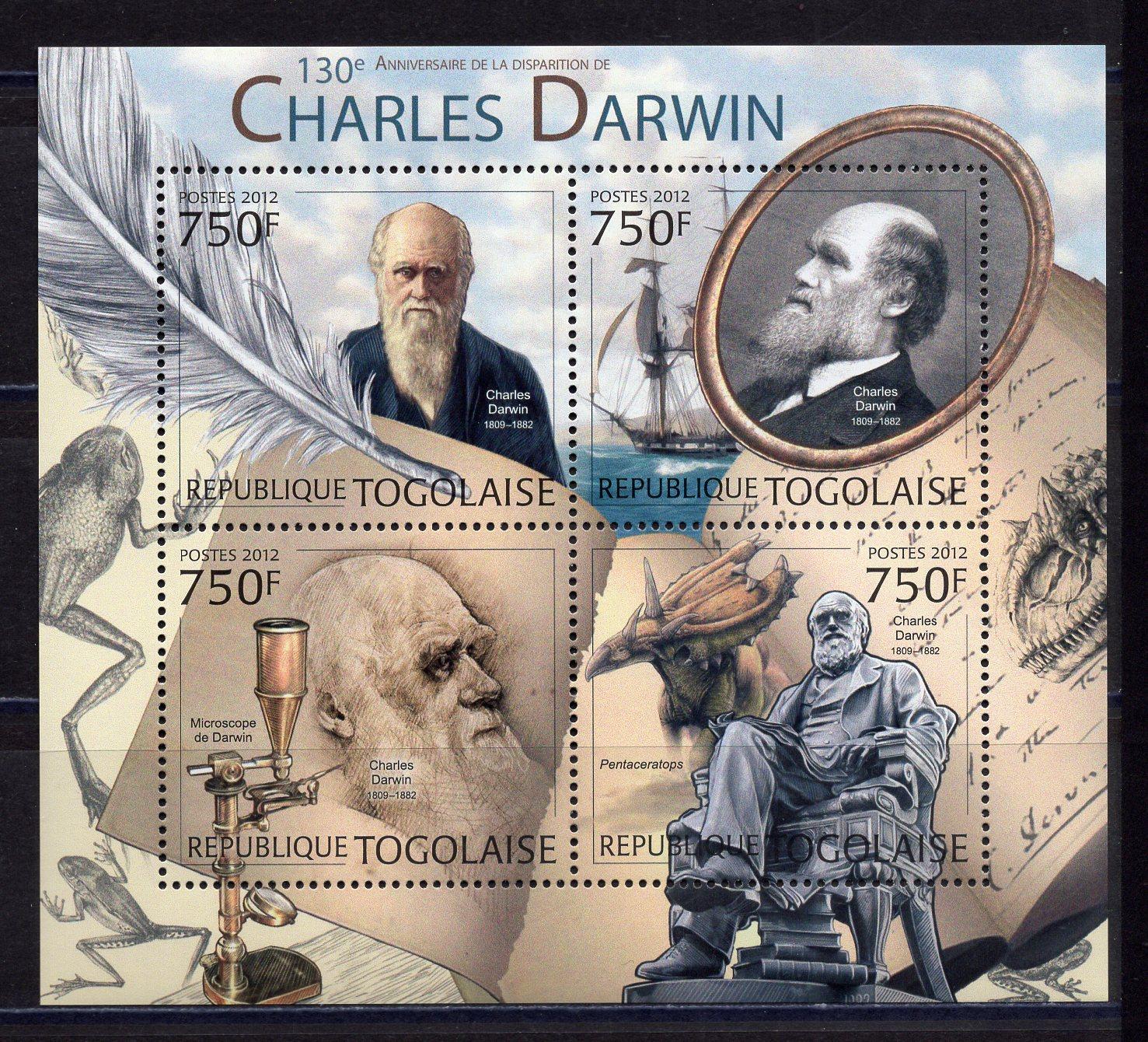 Почтовые марки. Того. 2012г. Чарльз Дарвин. №4523-4526. Беззубц.