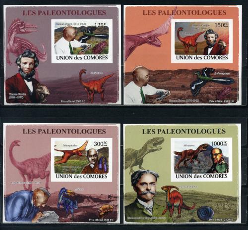 Почтовые марки. Коморы. 2009г. Палеонтологи. Динозавры. №1960 etc. Беззубц. Люкс-блоки.