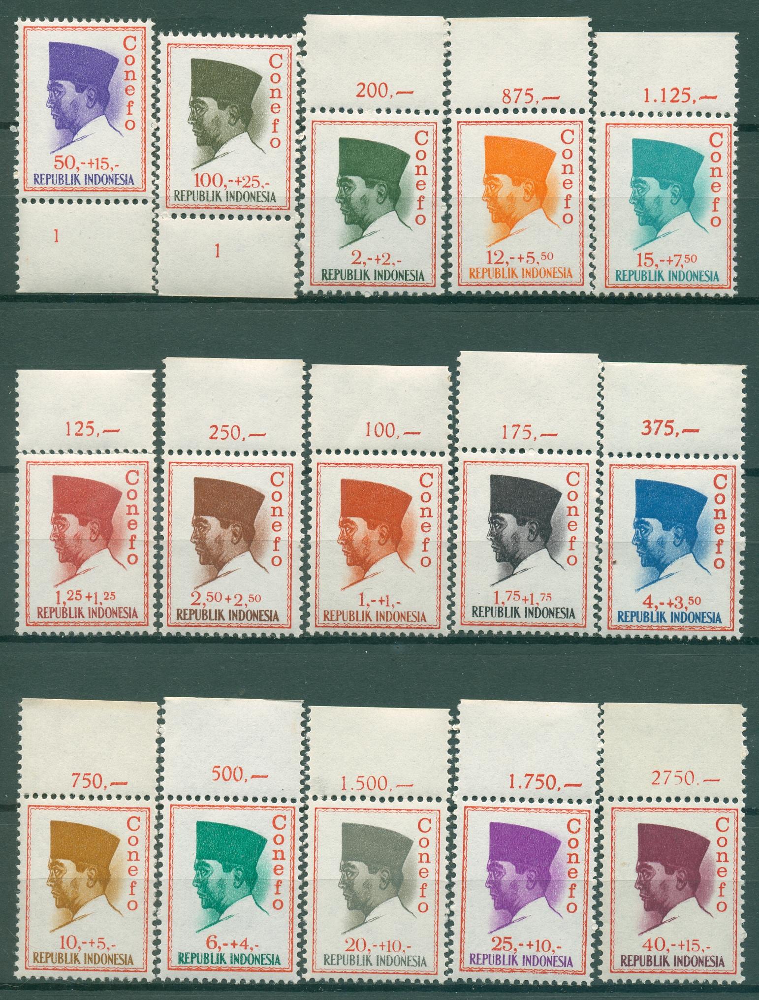 Почтовые марки. Индонезия. 1965г. Стандарт. Президент Сукарно. №473-487.