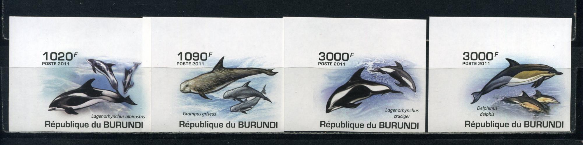 Почтовые марки. Бурунди. 2011г. Дельфины. №2054в-2057в. Беззубц.