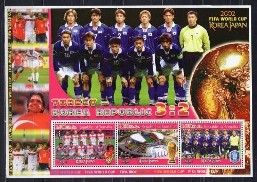 Почтовые марки. Сомали, 2002 г. Футбол. Сборная Турции и Кореи. Некатал.