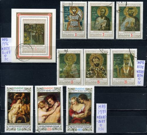 Почтовые марки. Болгария. 1976-1977гг. Религия. Рубенс. Блок №67. №2529-2534.2625-2627.