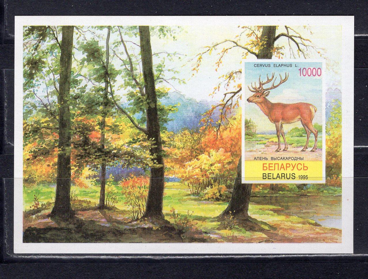 Почтовые марки. Беларусь. 1995г. Благородный олень. Блок №5. Беззубц.