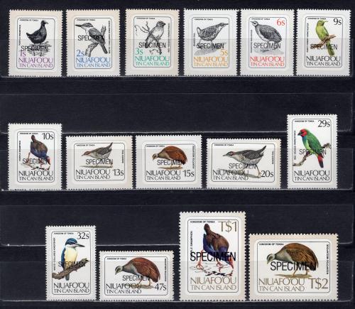 Почтовые марки. Ниуафо'оу. 1983г. Стандарт. Птицы. Надпечатка. №27-41. Самоклейки.