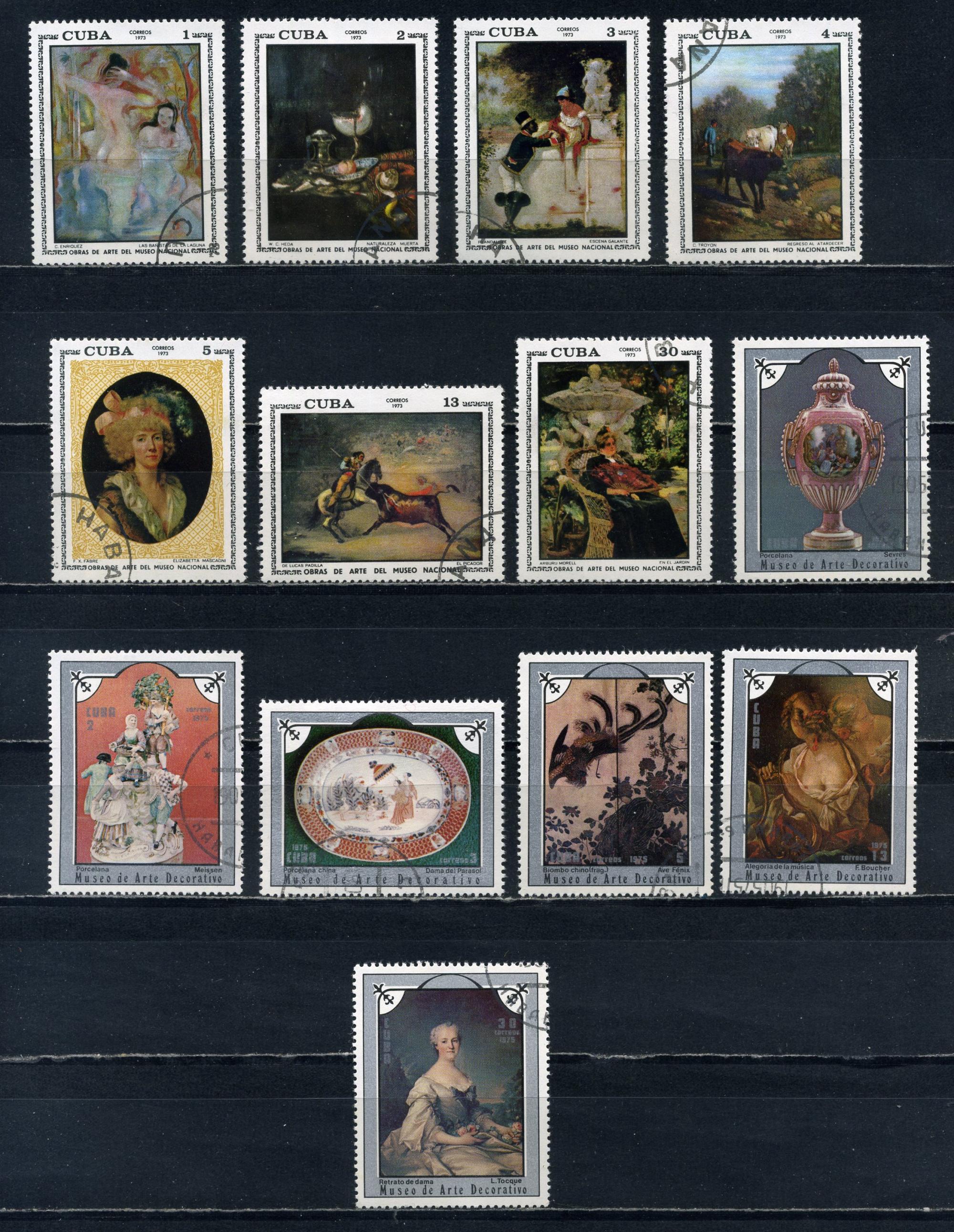 Почтовые марки. Куба. 1973-1975гг. Живопись. №1848-1854.2049-2054.