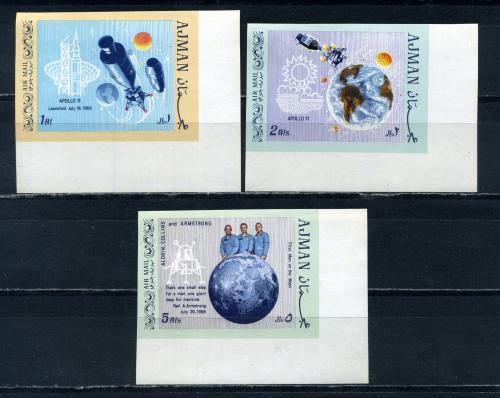Почтовые марки. Аджман. 1969г. Космос. №466в-468в. Беззубц.