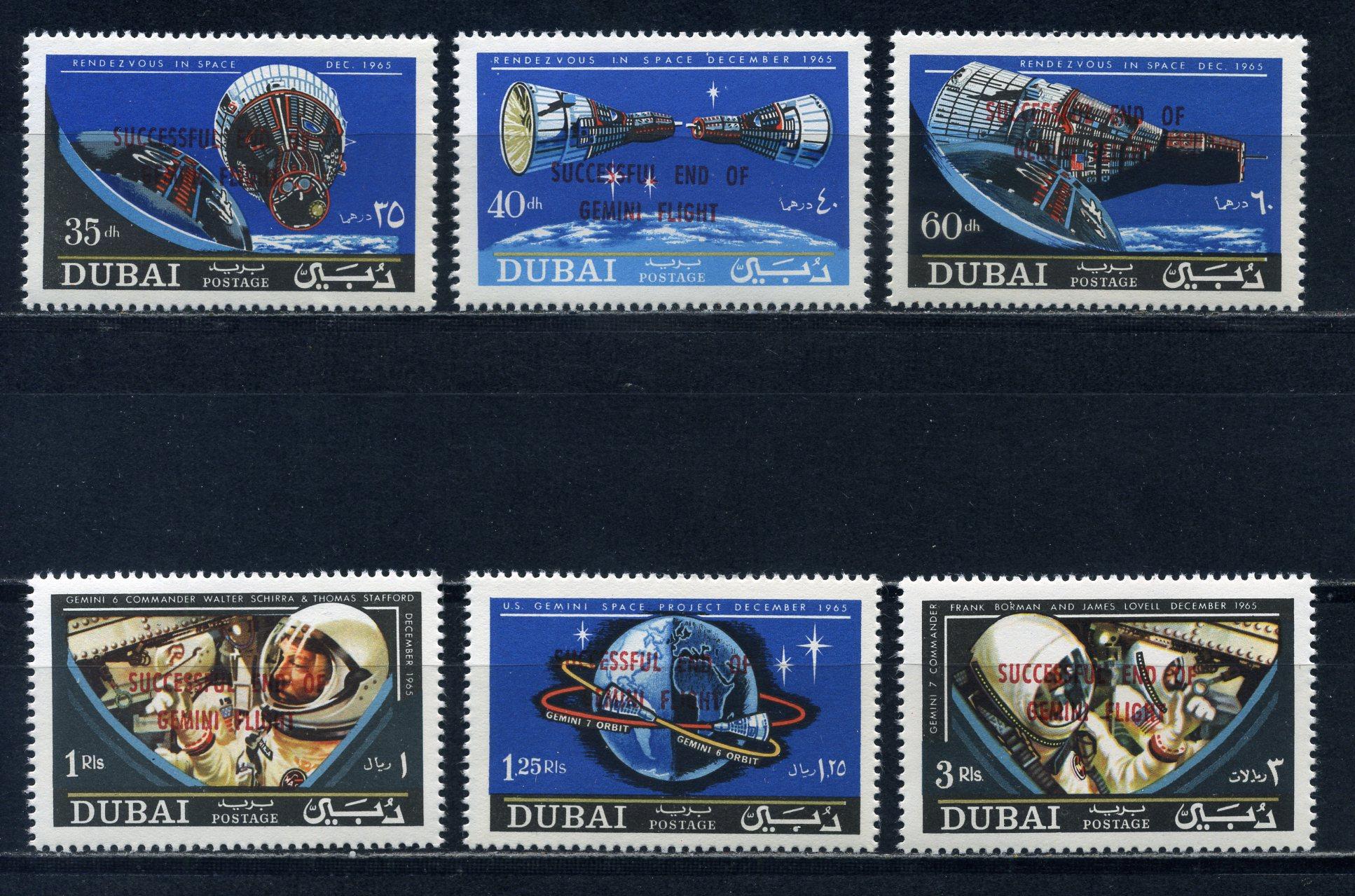 Почтовые марки. Дубай. 1967г. Космос. Джемини-6. Надпечатка. №237-242.