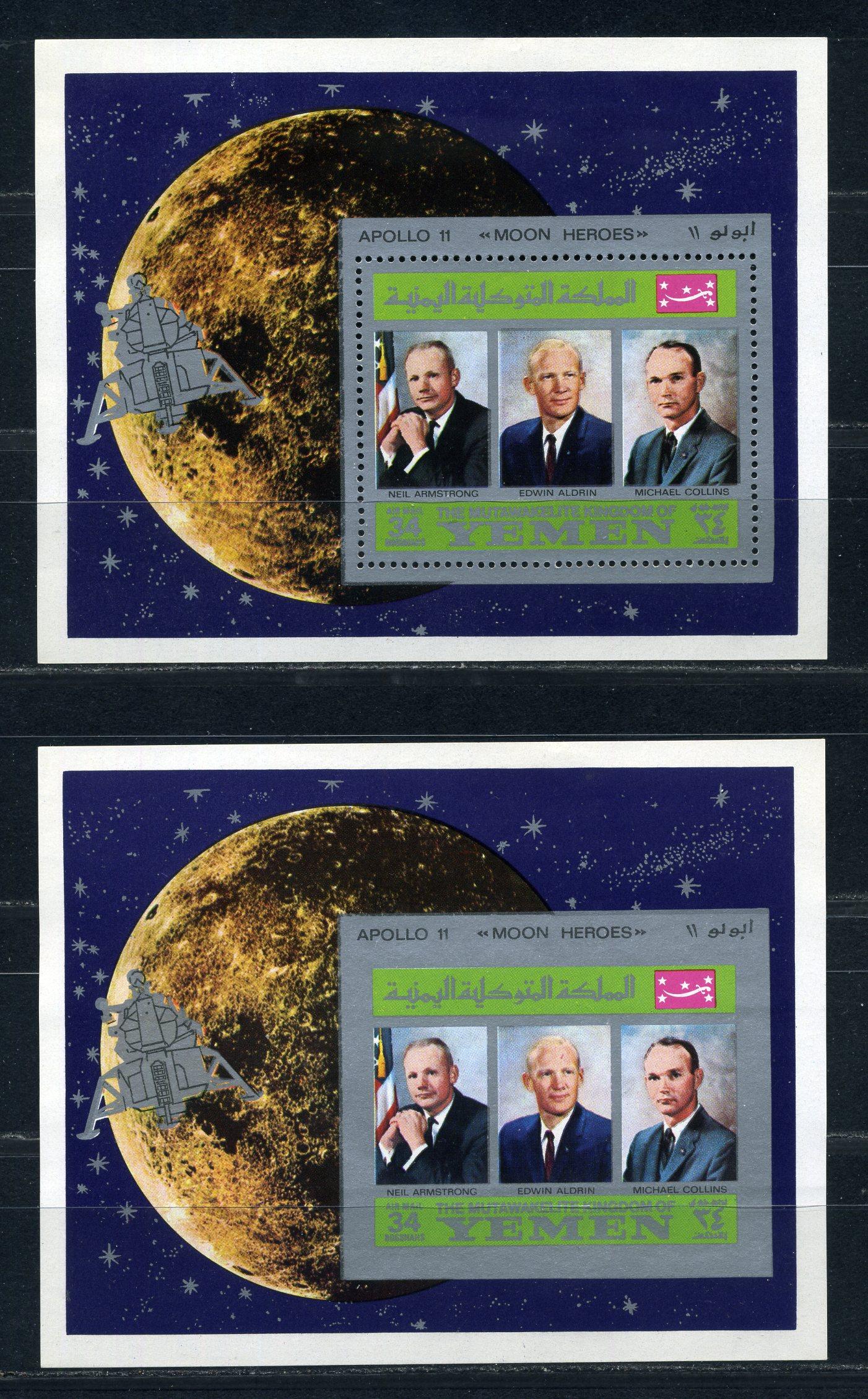 Почтовые марки. Королевство Йемен. 1969г. Космос. Герои Луны. Блок №190 А+В. Weebau.