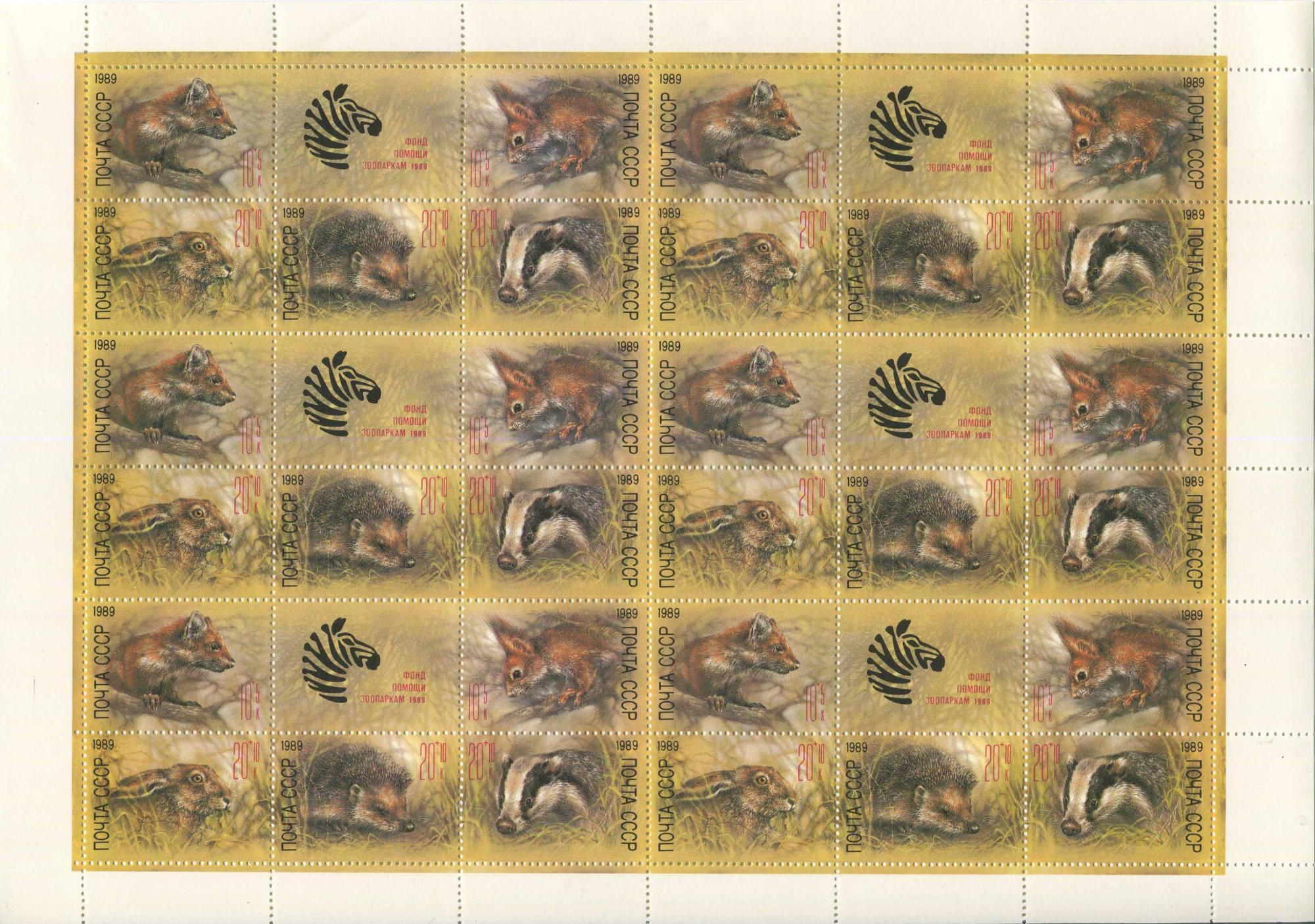 Почтовые марки. СССР. 1989г. Животные зоопарка. ЛИСТ. №6054-6058.