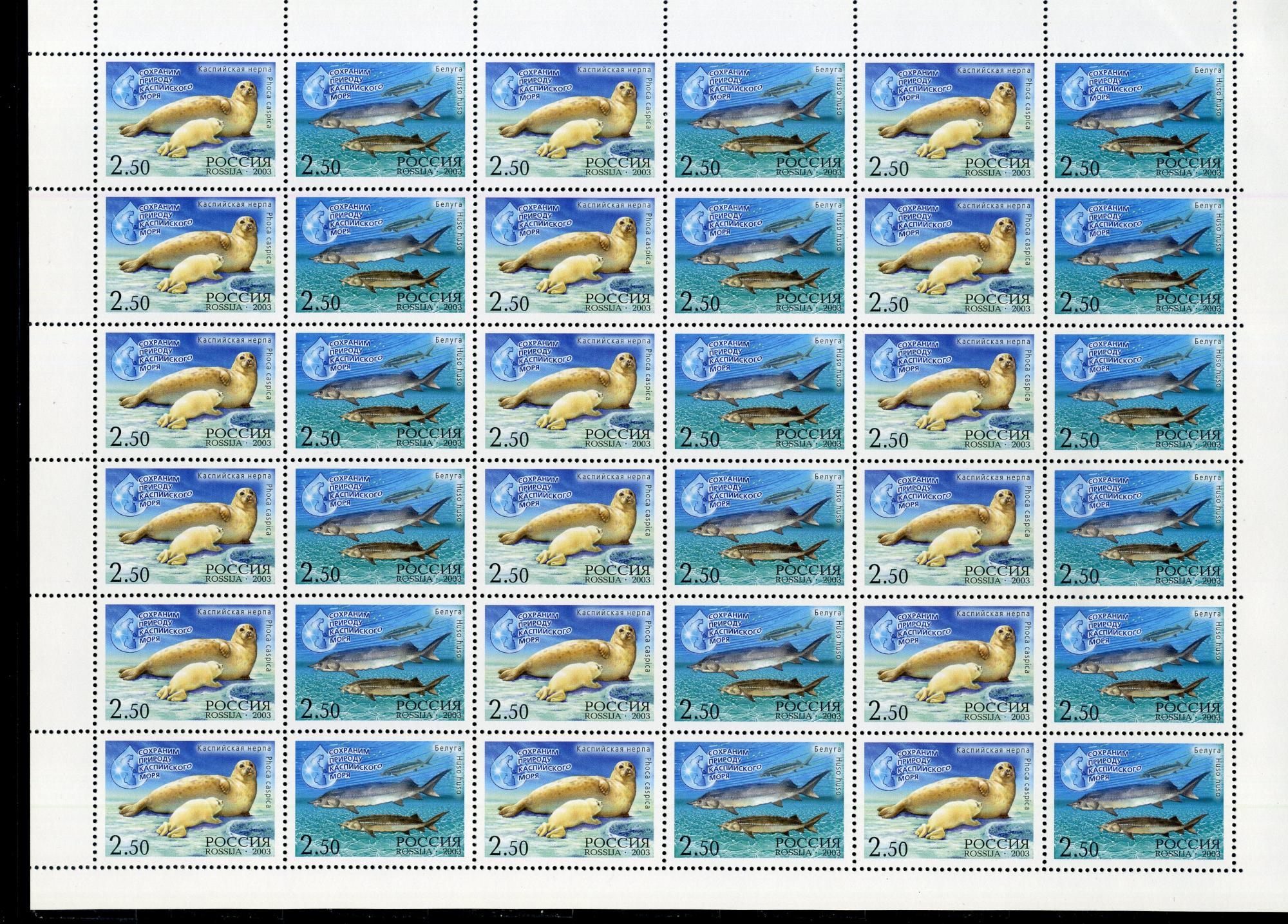 Почтовые марки. Россия. 2003г. Сохраним природу Каспийского моря. №886-887. Лист.