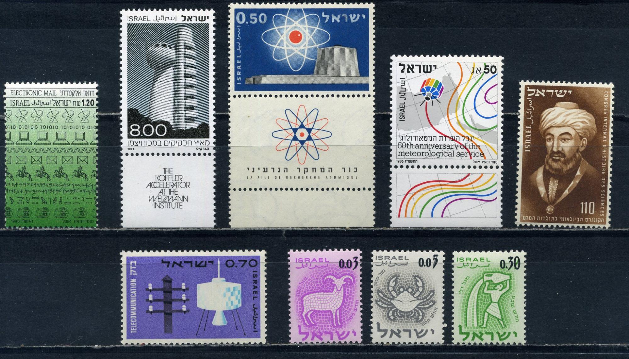 Почтовые марки. Израиль. 1953-1990гг. Космос. Астрономия. Наука. Сборный лот. №88.216 и т.д.